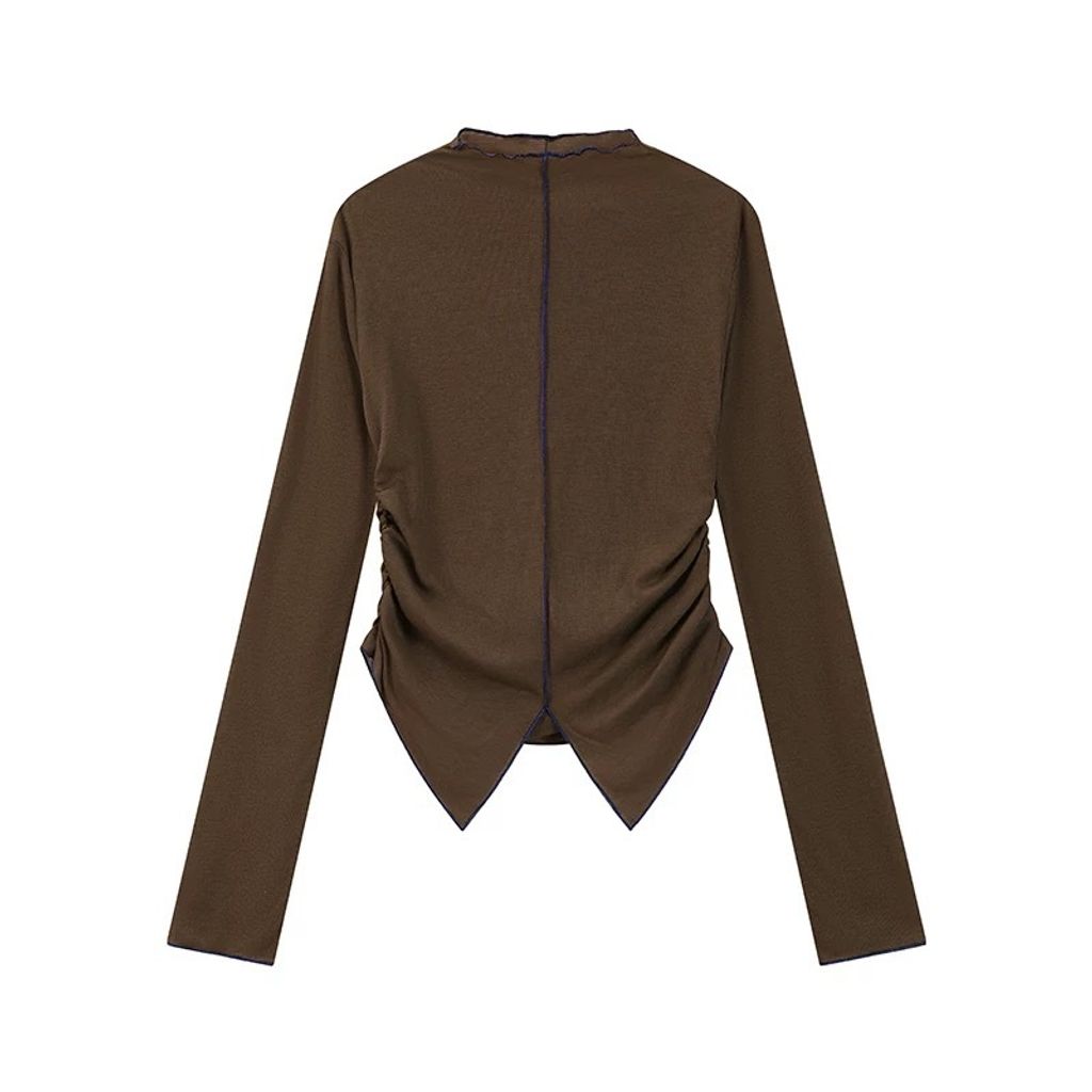 CONTRAST LINING LONG SLEEVE TEE - BROWN