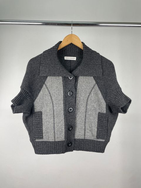 Hiroko Koshino 2 Tone Grey Knit S/s Collared Cardigan